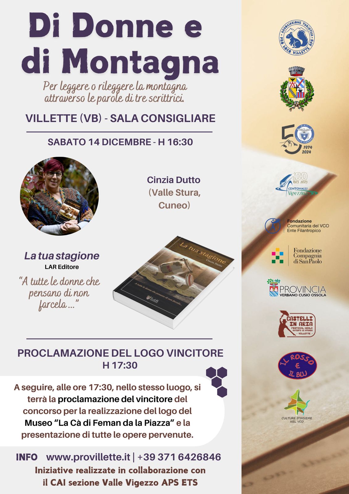Sabato 14 dicembre 2024,dalle ore 16:30 presso la sala consiliare del Comune di Villette, incontro con la scrittrice Cinzia Dutto.
